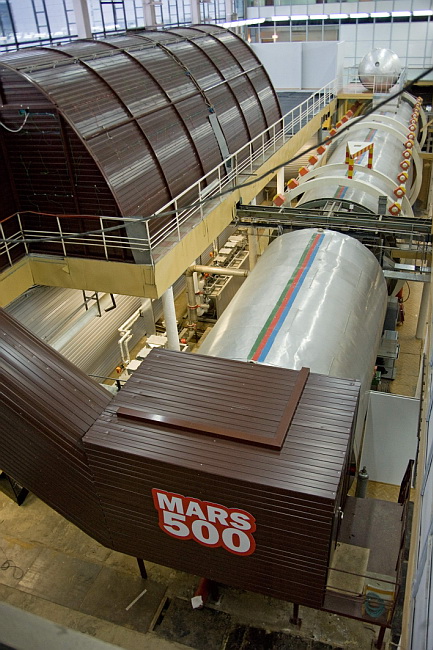 Tomorrow, on 3 June 2010, six men will be locked into a 550-cubic-meter space (about 20,000 cubic feet) for 520 days to simulate a mission to Mars. The project, called “Mars-500”, is being conducted by the State scientific center of the Russian Federation—Institute for Bio-Medical Problems of RAS under the joint control of Roscosmos and the Russian Academy of Sciences. This will be the third phase of testing, following a 14-day isolation experiment conducted in November 2007 and a 105-day isolation experiment (completed in July 2009). The mission will simulate a 250-day journey to Mars, a 30-day surface exploration phase, and a 240-day return trip. (The photo at right is an external view of the test facility.)