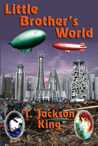 Ian Randal Strock’s Fantastic Books has recently published its first original novel: T. Jackson King‘s Little Brother’s World. The book tells the story of Little Brother, who has “survived as an orphan on the colony planet Mother’s World by following two very firm rules in his scavenging through the Alor City trash dump: First, you grabbed anything edible before the valuables. Second, you never talked to the garbage. But then the Pube girl Sally talked to him—and he talked back, even though she was tied up ‘garbage’ deposited in the dump.